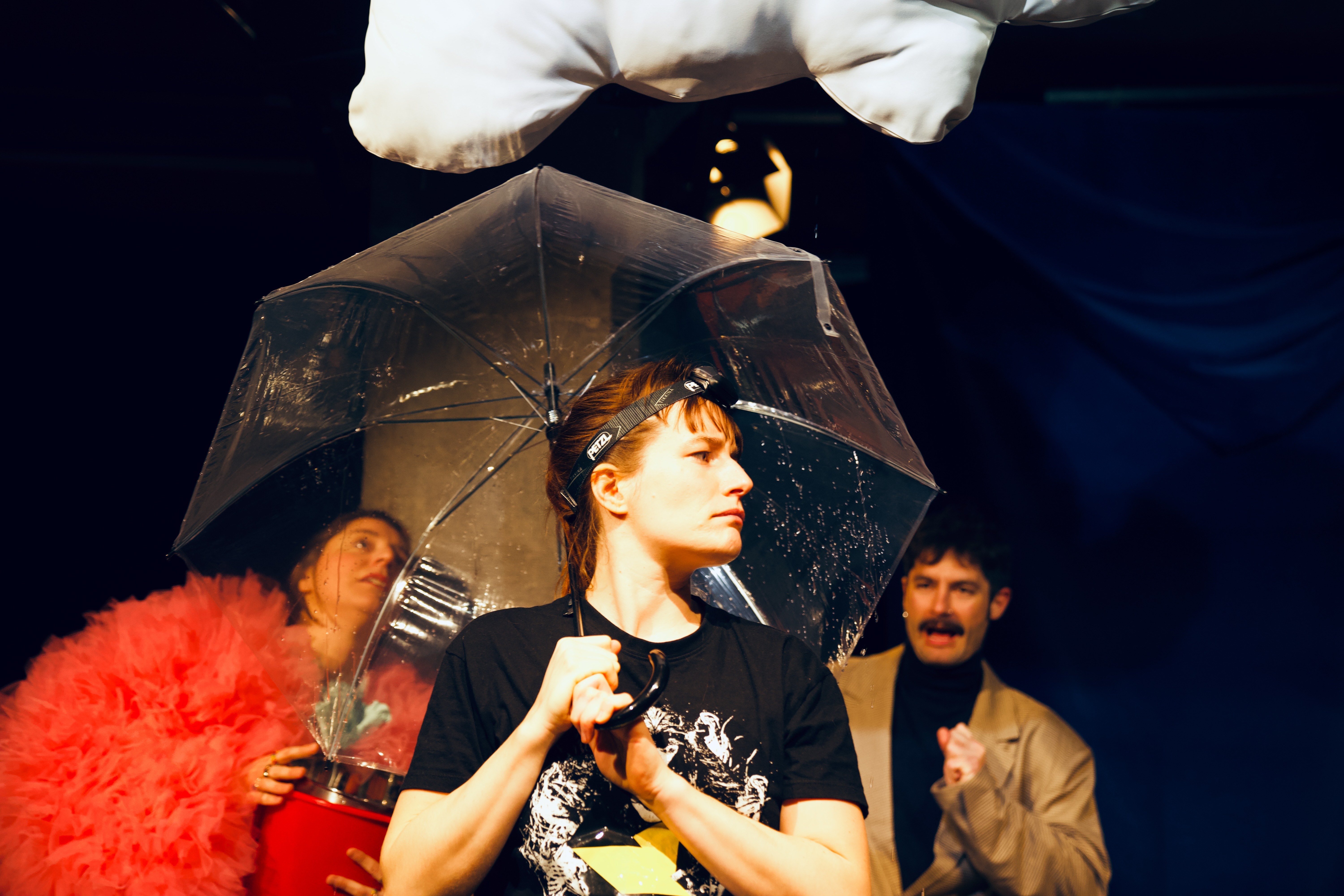 Gemeinsam mit dem Publikum finden sie heraus, dass jedes Theater seinen guten Geist braucht – und dass Angst zwar ein Zeichen von Fantasie ist, einem aber oft im Weg steht.